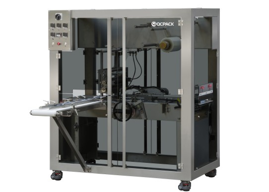 本機適用于各行業(yè)中的單件盒式物品的薄膜自動包裝(帶金拉線)。本機整體機架采用碳鋼噴塑、落地多開安全門結(jié)構(gòu),采用平推式推盒結(jié)構(gòu),更換模具簡單,調(diào)節(jié)距離多處采用手搖式調(diào)節(jié)尺寸,大大節(jié)省換模具時間,固定膜處采用氣漲軸輥固定,使換膜更簡單、快速。